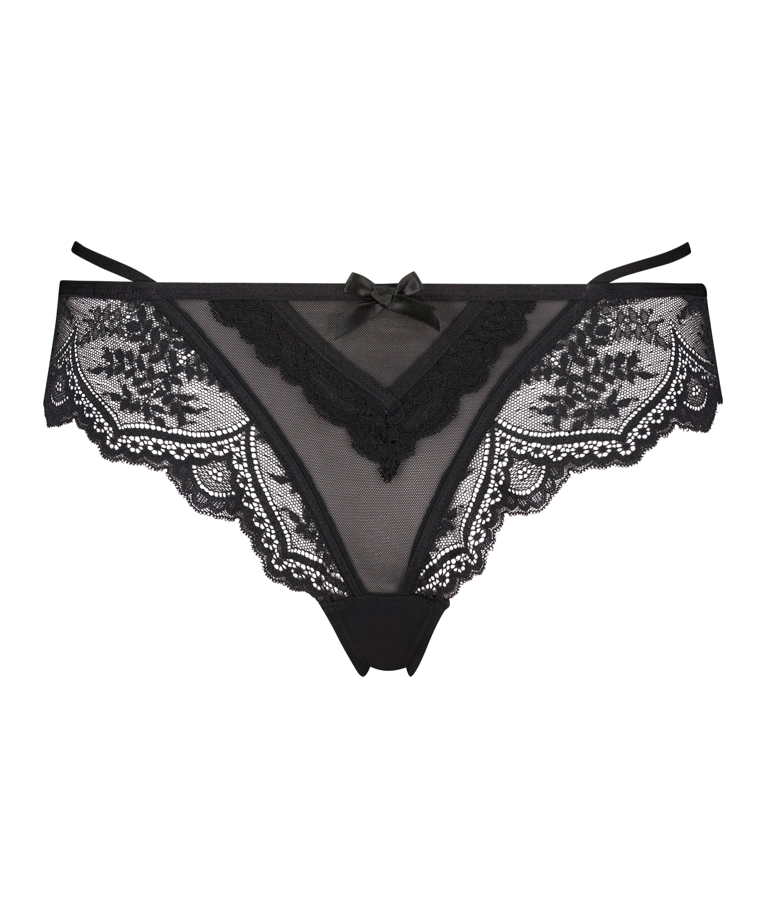 Dieser Brazilian hat einen echten Wow-Effekt! Der Slip ist mit viel Spitze versehen und weist auf der Vorderseite eine kleine, verspielte Schleife auf. Kombiniere ihn mit einem passenden Bralette oder BH, um Dein Set zu vervollständigen.