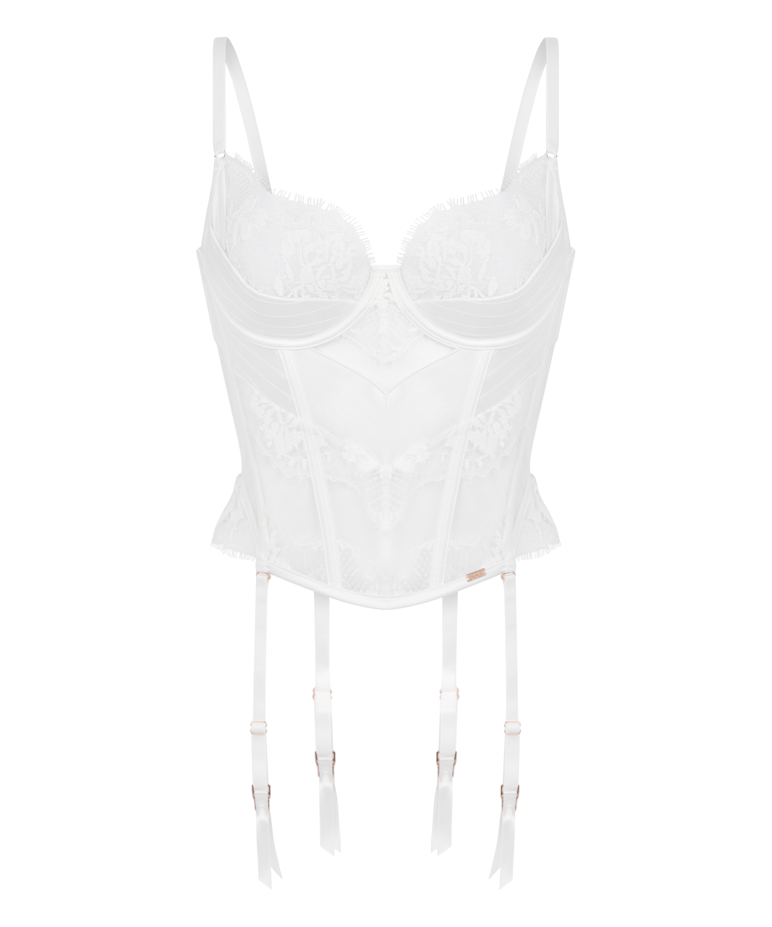 Mit diesem atemberaubenden Bustier aus Spitze und Mesh zeigen Sie Ihre Verführungskünste! Der Mix aus durchsichtigen und glänzenden Stoffen bildet einen reizvollen Kontrast. Das strukturierte Design und der dickere untere Körbchenbereich sorgen für Formung und Halt. Mit den abnehmbaren Strapsbändern können Sie Ihren Look für jeden Anlass individuell gestalten!