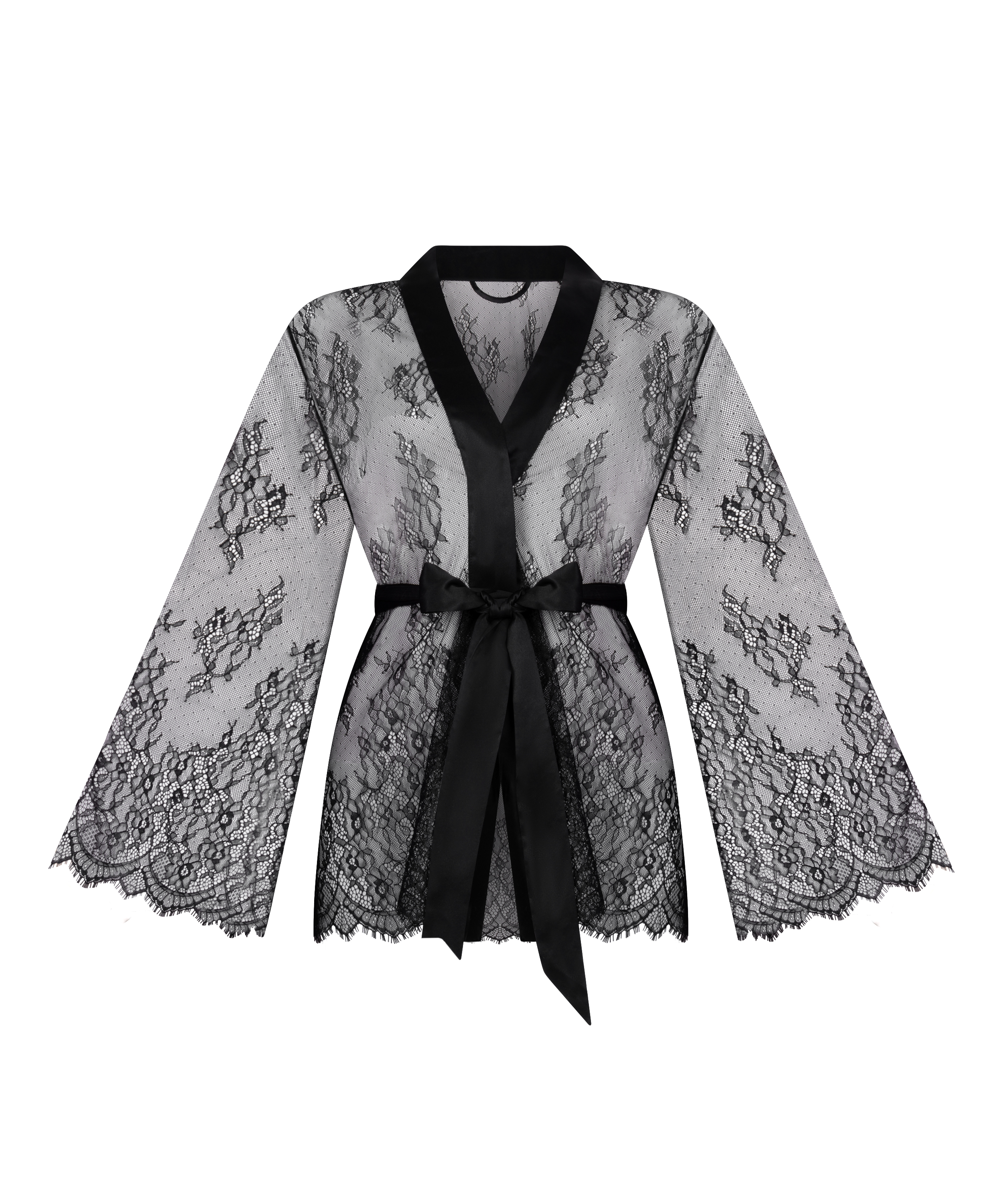 Hülle dich in Eleganz mit unserem All-over-Spitzen-Kimono, einer luxuriösen Ergänzung deiner Dessousgarderobe. Dieses atemberaubende Kleidungsstück ist komplett aus Spitze gefertigt, die eine feminine Ausstrahlung hat, während das seidige Satinband die Taille umschmeichelt und eine schmeichelhafte Silhouette formt.