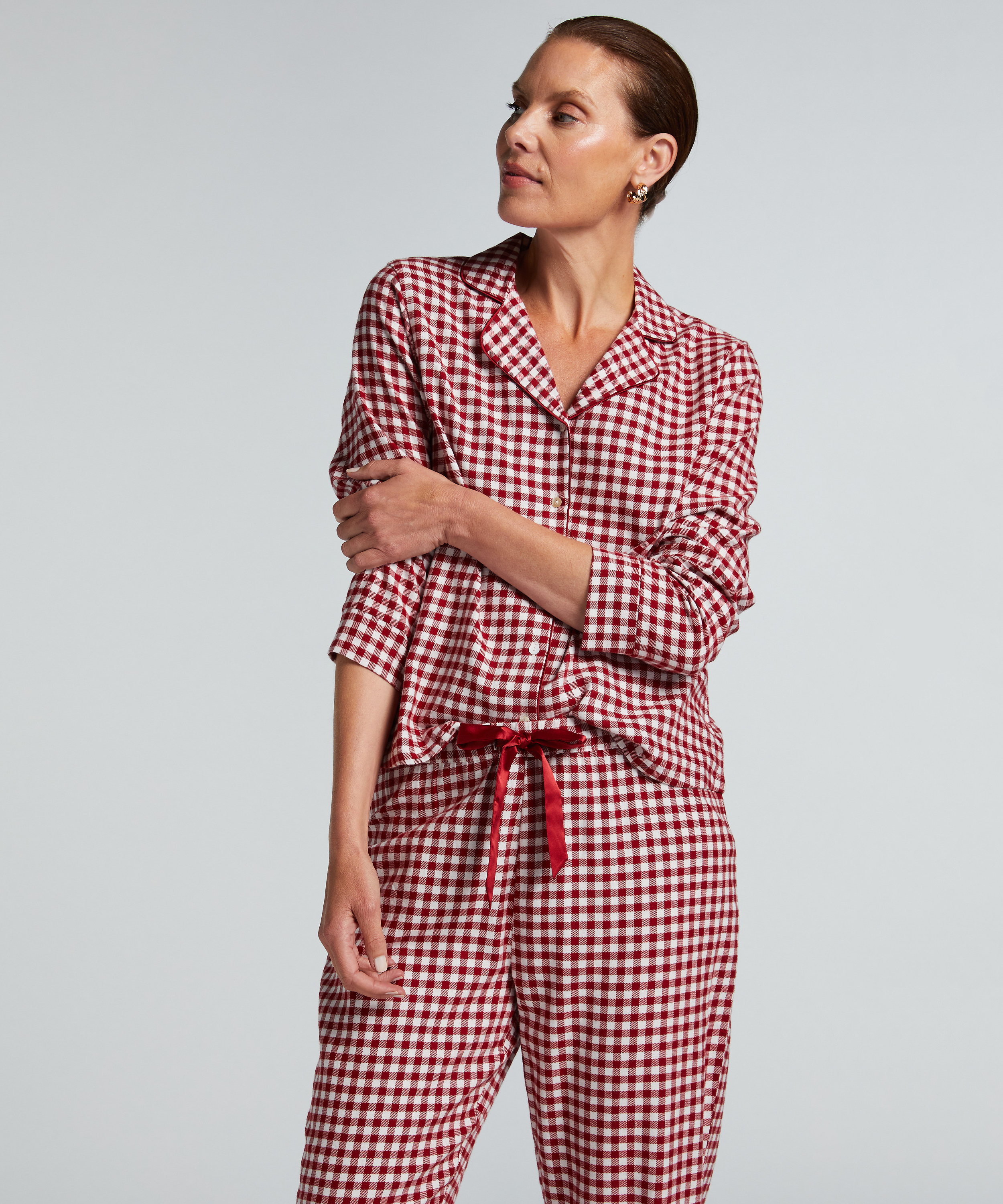 Mit diesem hübschen Pyjamaset sind Sie auf einmal fertig für den Abend! Die Hose hat lange, weitere Beine und Gummi im Bund. Perfekt also!