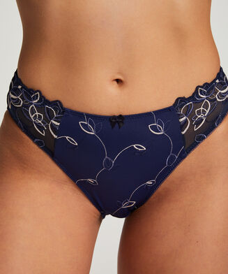 Dieser Slip ist aus einem geschmeidig fallenden Material, das für eine angenehme Passform sorgt. Der Slip ist vorne mit Blumenstickerei und einer Schleife verziert.