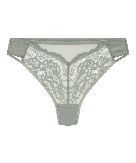 Dieser feminine String ist eines der unverzichtbaren Basics deiner Kollektion! Die Vorderseite ist mit aparter Spitze versehen und die Rückseite besteht aus komfortablem Mesh. Kombiniere ihn mit deinem Lieblings-BH in derselben Farbe!