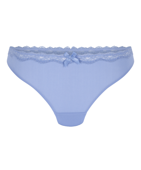 Dieser String besteht aus einem Rippenstoff und ist oben mit einem Spitzenbesatz versehen. Die Schleife in der Mitte macht den String komplett! Kombinierbar mit dem passenden BH zu einem kompletten Set.