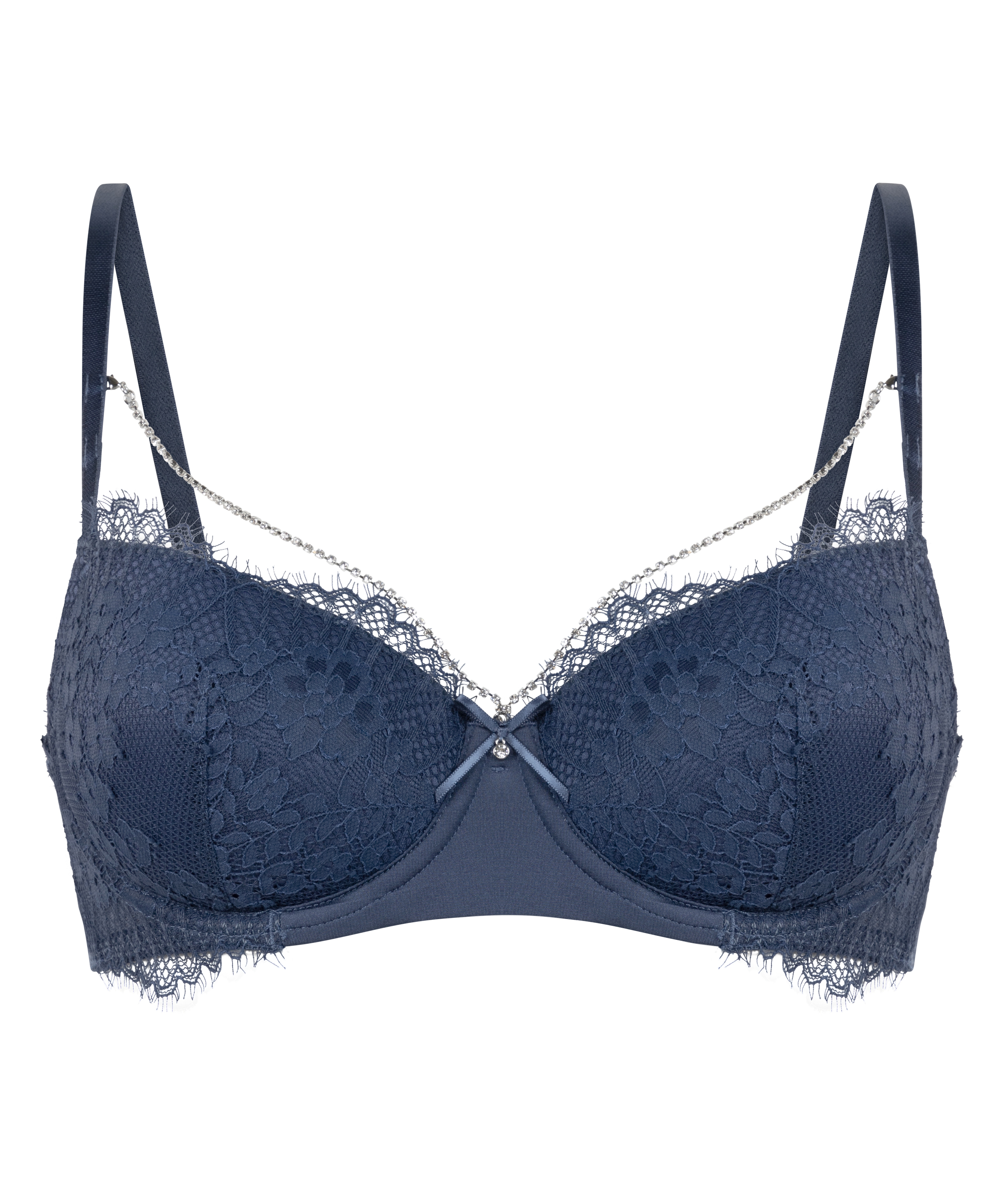 Fühl dich unwiderstehlich sexy in diesem Bügel-BH! Mit verführerischer Spitze und einer süßen Schleife zwischen den Cups. Inklusive abnehmbarer Kette für extra Style. Hol dir die passenden Höschen, um dein Set perfekt zu machen!